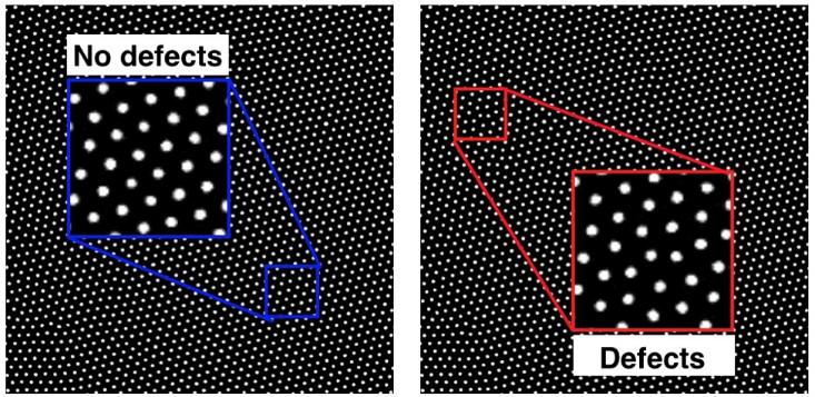 One of the most important parts of learning about microscopic order is to understand when and how that ordering fails. For instance, if you look closely at a picture of colloids in a crystal lattice, you’ll notice that the ordering isn’t uniformly precise: We can observe imperfect or disturbed regions, which are called defects.