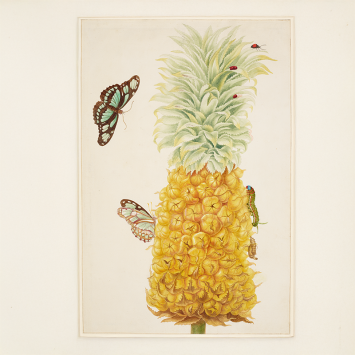 From roughly the 15th through the 19th centuries, most European botanical collectors and artists experienced the Americas through seeds and specimens painstakingly brought back from scientific voyages. But some traveled to encounter plants in their natural habitats. One such artist was Maria Sibylla Merian. Merian was born in Frankfurt, where her stepfather, the still-life artist Jacob Marrel, taught her to paint flowers in watercolor. Alongside this artistic education, Merian developed an enduring interest in entomology. Between 1679 and 1683, she published two volumes on the insect life cycle, the product of years of careful study.