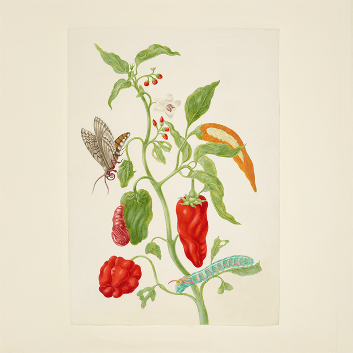 Alongside these published illustrations, Merian produced at least two deluxe versions. The set now in the Royal Collection may have been presented to George III, then Prince of Wales, in 1755. Merian’s pioneering depiction of the interconnected relationship between plants and insects had a lasting impact on how others illustrated the natural world. ![]()