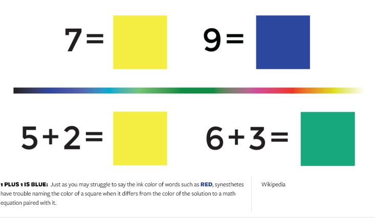 Anyone who has spent time around toddlers knows they say some strange things. But my daughter’s curious way of talking about colors was so emphatic, and so consistent, that I began to wonder if she might be experiencing synesthesia—a kind of cross-wiring of the senses that can evoke flavors from sounds, tastes from words, or colors from smells.