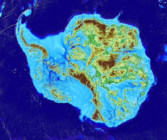 If all of Antarctica’s continental ice vanishes, seas could rise an average of 190 feet above where they lap today. And if it does, the bedrock will be laid bare, its canyons, mountains, ridges, and swales. Something old, something new. ![]()