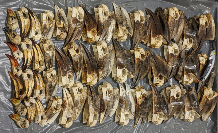 In October of 2023, a shipment of 45 hornbill skulls from Cameroon in Africa was seized by United States Fish and Wildlife Service officials at an airport in New York City. The skulls were shorn of feathers, the eye sockets bare, the long beaks stacked together in rows. Hornbills are a family of tropical birds with bulbous bills (think Zazu, from the Lion King), some of which sport horn-like features known as casques. The shipment was part of a burgeoning new trade in hornbill skulls from Africa.