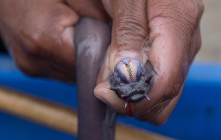 Threatened hagfish can bind vast quantities of water into a dense slime in a split second.