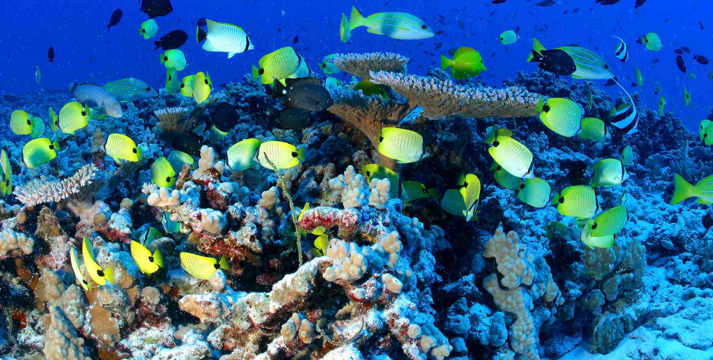 Lead image: Reef fish including ornate butterflyfish, pennant butterflyfish, and bluestripe snapper swirl around corals at French Frigate Shoals in Papahānaumokuākea Marine National Monument. Credit: Mark Sullivan/NOAA Fisheries Hawaiian Monk Seal Research Program