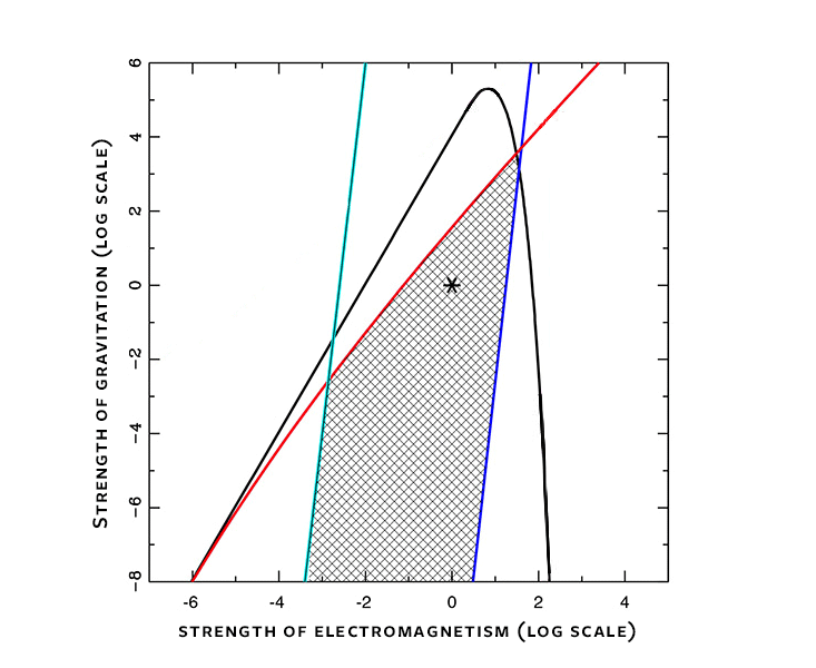 Putting it all together, the strengths of the fundamental forces can vary by several orders of magnitude and still allow planets and stars to satisfy all the constraints (as illustrated in the figure below). The forces are not nearly as finely tuned as many scientists think.