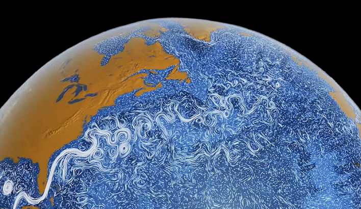 From our small, terrestrial vantage points, we sometimes struggle to imagine the ocean’s impact on our lives. We often think of the ocean as a flat expanse of blue, with currents as orderly, if sinuous, lines. In reality, it is vaster and more chaotic than we can imagine. Its waters move in ways that lack a terrestrial equivalent and, in doing so, the ocean shirks tidy metaphor.