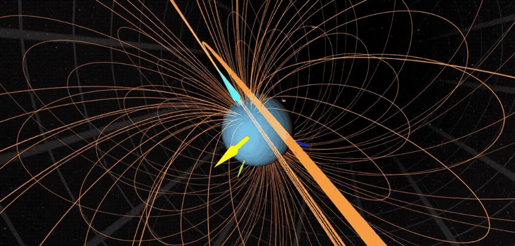 The Voyager flyby did offer hints that there’s more to Uranus than meets the eye. The planet has a system of thin, dark rings, which turn out to contain large chunks—possibly the remains of a moon that was destroyed long ago. More surprising, Voyager’s instruments showed that Uranus’s magnetic field is tilted 60 degrees relative to its axis, as if your compass needle pointed to Houston instead of the north pole. There must be a huge, lopsided magnetic generator cranking away inside the planet, which leaves Hammel buzzing with questions: “What kind of internal structure can do that? Is it stable? Does it change over time?”