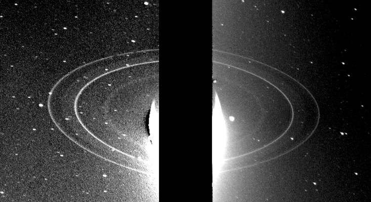 The moons of Neptune document a whole other style of disaster, one that spared the planet but unleashed pandemonium around it. Neptune’s system of moons is overwhelmingly dominated by a single large one, Triton, surrounded by 13 much smaller bodies, mostly in irregular, looping orbits. Triton orbits the planet in a clockwise direction, the opposite of every other planet and major moon, indicating that it formed separately and later got snared by Neptune. When that happened, it must have rolled through the Neptunian system like a bowling ball, as Runyon explains: “The gravitational interactions from Triton probably scattered Neptune’s original system of moons. If there were rings, it would have scattered them, too.” The current moons either reassembled from the wreckage or were captured afterward. Triton also left behind a set of thin, clumpy rings that bunch together in arcs, unlike any other formation in the solar system.