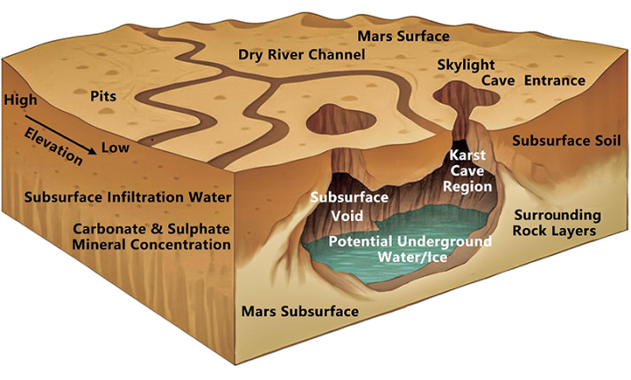 Now, scientists in China and Italy say they may have discovered a new category of Martian cave formed by liquid water dissolving rock. The majority of caves found on Mars were formed by volcanic or tectonic processes. But these potential new features, called karstic caves, have different origin stories. And because their formation may have involved water in its liquid form, they could serve as targets to look for traces of life.
