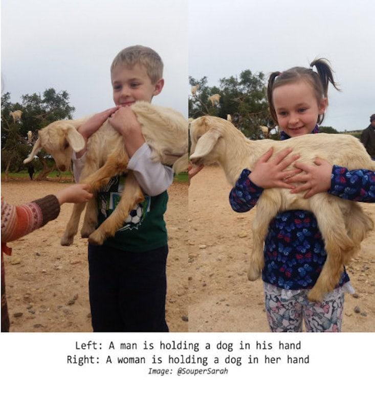 Bring sheep indoors, and they’re labeled as cats. Pick up a sheep (or a goat) in your arms, and they’re labeled as dogs.