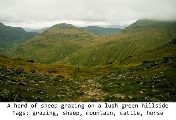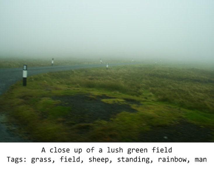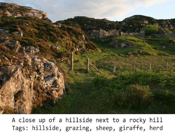 Microsoft Azure’s computer vision API added the above caption and tags. But there are no sheep in the image of above. None. I zoomed all the way in and inspected every speck.