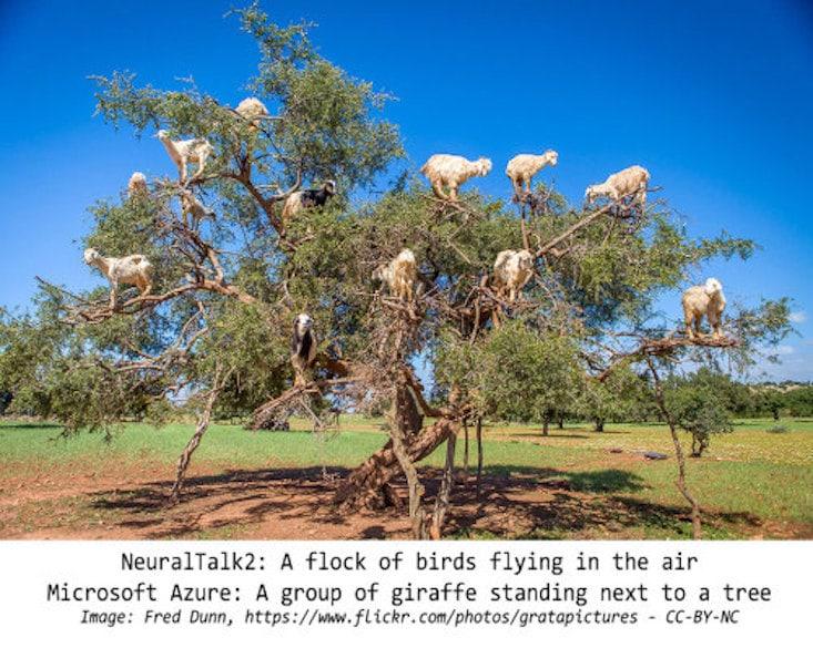 And if goats climb trees, they become birds. Or possibly giraffes. (It turns out that Microsoft Azure is somewhat notorious for seeing giraffes everywhere due to a rumored overabundance of giraffes in the original dataset.)