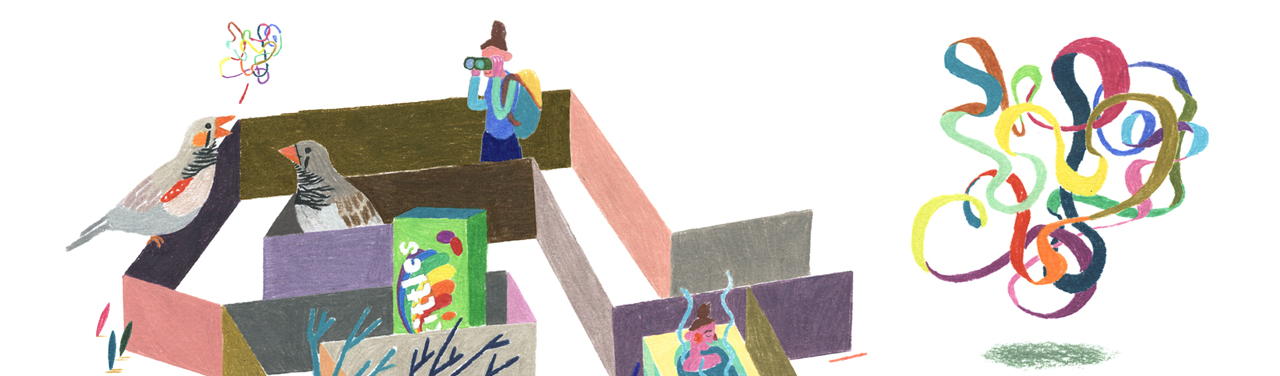 All three are complex abilities that can’t easily be pinpointed to specific regions of the brain, Bilder says. Instead, he’s exploring the thickets of brain networks that allow us to engage in these processes, and the genes that code for them. He’s also studying molecular expression to figure out how and when the responsible genes are switched on and off. To do that, he’s looking to our creative counterparts in the animal kingdom.