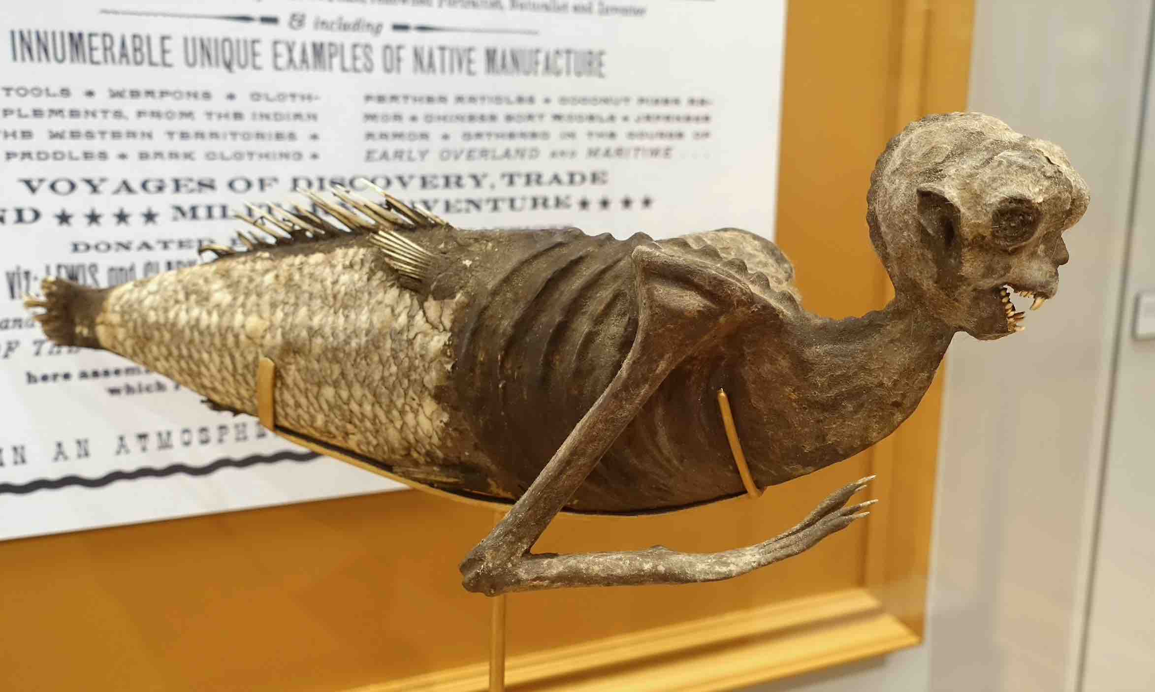Even with this proliferation of the study of merpeople, many European philosophers, scientists and anatomists remained skeptical of the existence of merpeople. Nevertheless, by the early nineteenth century, ‘mer-mania’ had reached fever pitch. This explosion of interest was especially revealed through newspapers. A nineteenth-century Westerner would have encountered a sighting, specimen, show or study of a merperson in his local newspaper at least once a month during the first half of the nineteenth century; Western readers were primed to finally figure out the mystery of merpeople. Industrialists pushed into hitherto underexplored regions, scientists classified and ordered the world with increasingly fine precision, and communication expanded to new heights. Newspaper publishers, of course, were more than happy to satisfy this insatiable thirst, printing stories of merpeople with little credulity and fueling underlying belief in these creatures. Purveyors like the English Captain Samuel Barrett Eades only added to this mania with his physical specimen of a supposed mermaid caught in the East Indies (it was really just a fake constructed by Japanese craftsmen for the Western market). Londoners flocked to see Eades’s mermaid in 1822, and a flurry of copies followed his example. Newspapers could not get enough of it, printing daily advertisements, studies, reviews and think-pieces on these mysterious creatures. Perhaps the mystery had finally been solved?