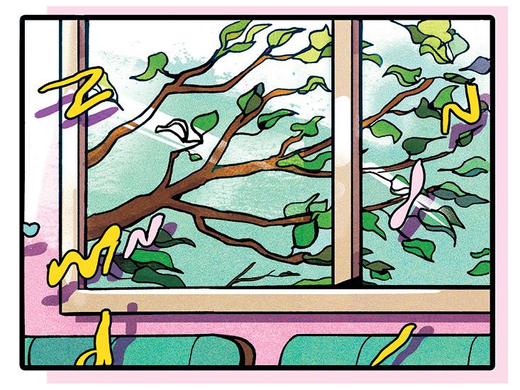 At this point I didn’t know much about my brain injury at all. I wasn’t in any pain, so my thoughts about my new condition were unfocused and fleeting. Instead of being occupied by questions about why I was in the hospital and what had happened to me, my mind was engrossed in an entirely different set of perceptions. The smallest of activities would enthrall me. Dressing myself, I was awed by the orbital distance between cloth and flesh. Brushing my teeth, I was enchanted by the stiffness of the bristles and the sponginess of my gums. I also spent an inordinate amount of time looking out the window. My view was mainly of the hospital’s rooftop, with its gray and untextured panels, though I developed a lot of interest in a nearby tree. I could only make out the tops of the branches, but I’d watch this section of needles and boughs intently, fascinated by how the slightest wind would change the shape entirely. It was always and never the same tree.