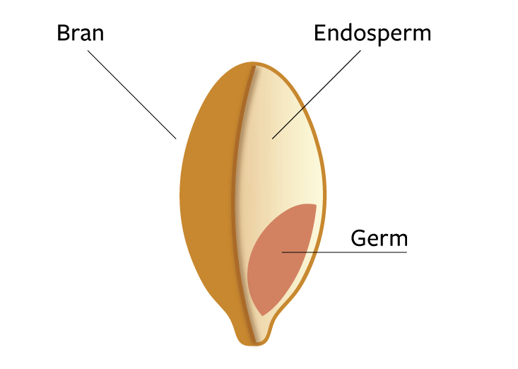 It has to do with the structure of a plant seed and what we do to them after they are harvested. Consider a grain of wheat. The outer seed coat (the “bran”) and the inner embryo (the “germ”) are small in terms of the overall seed weight. The bran composes about 14 percent of the total weight, while the germ adds another 3 percent. Despite their low weight, these two parts of a seed are packed full of nutrients. And the bran in particular is rich in complex carbohydrates, although a chemist calls them polysaccharides—very long chains of sugar molecules.