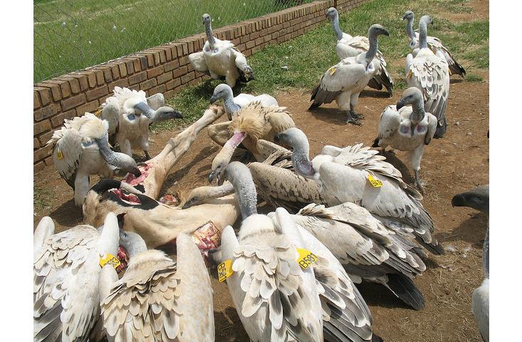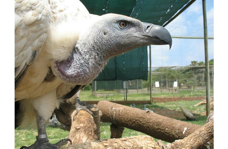 African vultures are vulnerable to a number of threats. Power-line collisions and electrocutions take down dozens of birds each year in already stressed populations. The use of vulture parts in traditional natural remedies put more birds at risk, and in parts of southern and western Africa, consuming a vulture’s brain (by eating or smoking it) is believed to confer clairvoyance, so traditional medicine, or muti, practitioners pay a bounty for vulture heads. Inadvertent and deliberate poisoning may be the biggest problem, and has cost the lives of entire breeding colonies of vultures in South Africa. Pharmaceuticals that are used to treat livestock remain in the animals’ bodies when they die, and can be toxic to vultures that eat the carcasses. Poisoned meat, which ranchers put out to target predators such as hyenas, are also dangerous to the birds.
