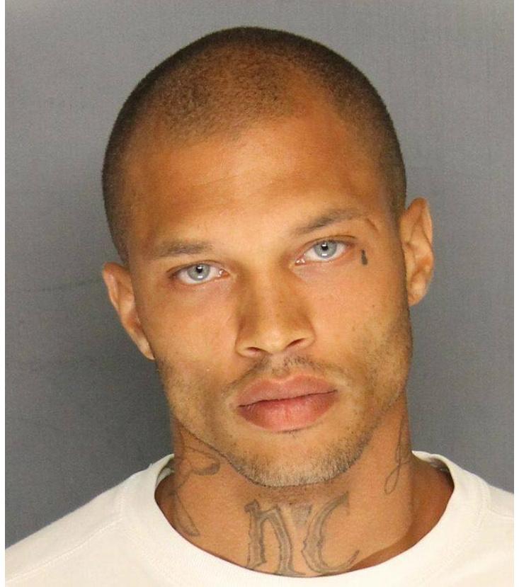 Jeremy Meeks, a 30-year-old convicted felon, was arrested on felony weapons charges and slapped with $900,000 bail. In his arrest photo taken by the Stockton Police Department and uploaded to its Facebook page, Meeks offered a rigid jaw line, pronounced cheekbones, bluish-grey eyes, and a generous pair of lips. The photo flew around the Internet, and the comments began pouring in. One typical reaction: “Being that sexy is illegal?” (This mugshot-hottie phenomenon isn’t exclusive to men, by the way. After her arrest photo went viral in September, the until-then little-known model Angela Coates wrote, “I’m the female Jeremy Meeks.” An admirer of hers tweeted, “I would sell off our family house for the bond money, leave my wife and kids homeless for Angela Coates :(”)