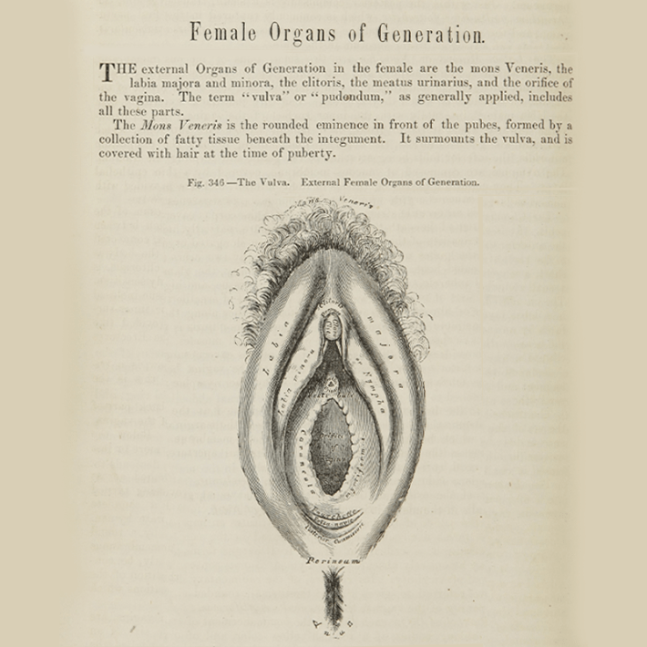 It wasn’t until 1858 that the vulva definitively arrived at its current location. In that year’s edition of Gray’s Anatomy, Zdilla found a detailed diagram titled “The Vulva. External Female Organs of Generation.” The figure clearly labeled the mons pubis, clitoris glans, clitoral hood, labia majora, labia minora, urethra, “orifice of vagina,” and perineum (the area between the vaginal opening and the anus), along with a handful of curly pubic hair. Thanks to the widespread popularity of Gray’s, says Zdilla, this diagram likely helped codify the modern definition.