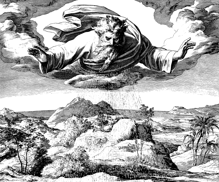 God spent his third day of creation emitting rain from his chest, bringing forth plants from dry land. Or at least that’s how the artist Julius Schnorr von Carolsfeld depicted God in his 18th-century engraving The Third Day of Creation. In Schnorr’s image the divine source of rain clearly looks like a human.